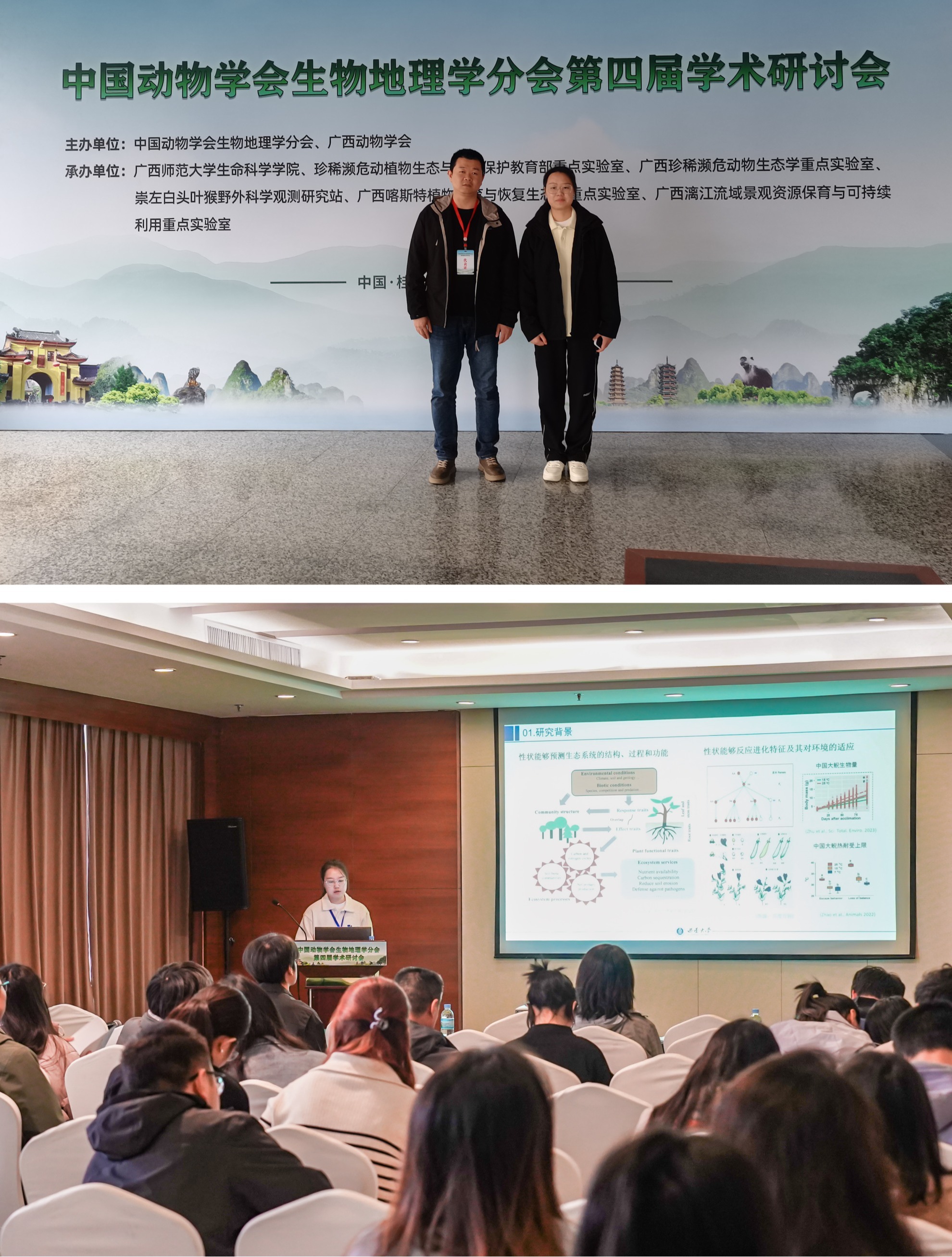2024年11月22日-25日,中国动物学会生物地理学分会第四届学术研讨会在广西桂林顺利召开。此次会议由中国动物学会生物地理学分会和广西动物学会联合主办,广西师范老员工命科学公司、广西喀斯特植物保育与恢复生态学重点实验室等承办。来自全国28个省(自治区、直辖市)的86个院校、科研机构及企业单位的310多位代表参加了此次学术盛宴。