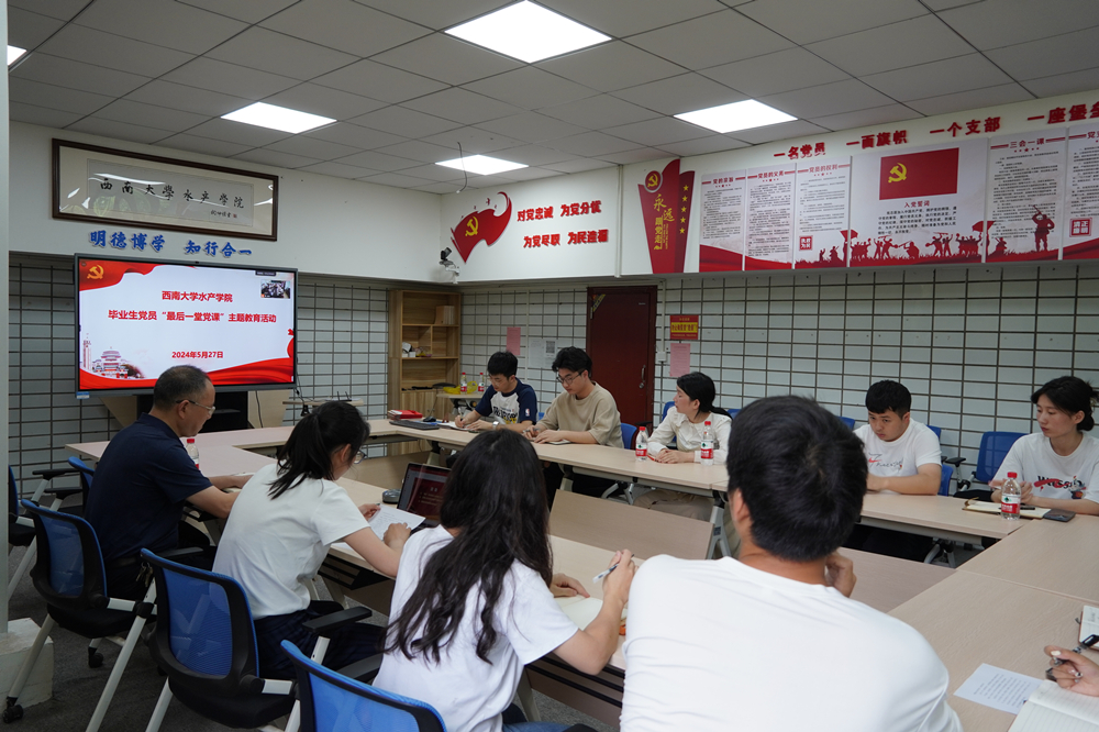 为深入学习贯彻习近平新时代中国特色社会主义思想和党的二十大精神,切实加强2024届毕业生党员的党性教育,5月27日下午,公司在荣昌校区10教三楼会议室和北碚校区sunbet申搏二楼会议室举行了2024届毕业生党员“最后一堂党课”主题教育活动。公司党委书记杨新斌,党委副书记、纪委书记刘一丹,员工党支部书记以及全体毕业生党员参加了活动,活动由公司专职组织员陈博老师主持。