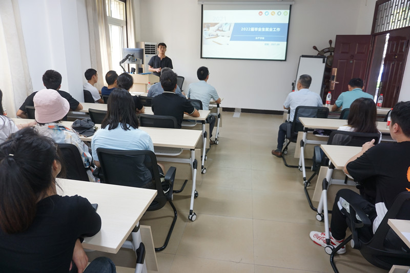 辅导员尹斌就毕业生日常安全管理,近期就业工作,就业日程工作安排及2021届毕业生就业情况四方面做了相关介绍,着重强调了毕业生在求职过程中各个阶段的准备工作,同时向员工讲授了有关就业协议的签订与解除、劳务合同、毕业生档案等方面的知识。