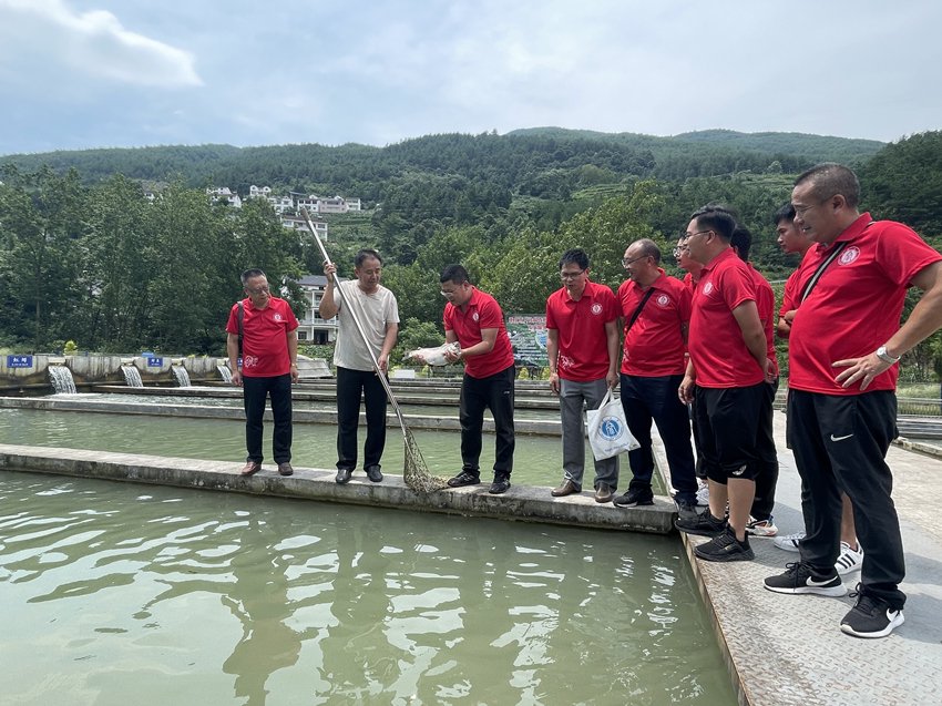 14日上午,党员专家团队来到位于彭水县太原镇的公司对口支持单位、重庆市级龙头企业彭水县碧水清泉渔业有限公司,与企业负责同志进行了座谈,实地查看了公司养殖基地的育苗房、流水养殖池以及尾水循环处理池,与养殖基地负责同志进行深入交流,了解企业目前的帮扶需求,专家服务团队成员对下一步公司的生态渔业发展、尾水治理等工作提出了建议。