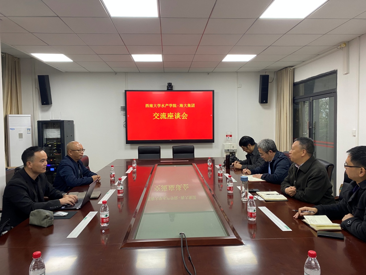 2020年10月28日,sunbet申搏与海大集团在十教207会议室召开了交流座谈会。出席本次座谈会人员有海大集团珠海海龙生物科技有限公司资深总经理丁健、海龙大区人行经理李满平。西南大学水产公司党委书记朱汉春、经理苏胜齐、党委副书记纪委书记穆奎、副经理段彪。会议由朱汉春书记主持。