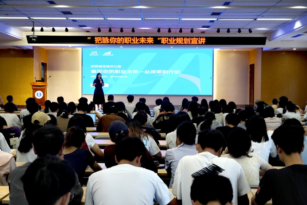 2024年5月9日下午,sunbet申搏特邀成都极地海洋公园人力行政部部长朱彤为同学们开展题为“把脉你的职业未来——从探索到行动”的职业生涯规划宣讲。公司副经理何文平教授出席并主持本次活动。