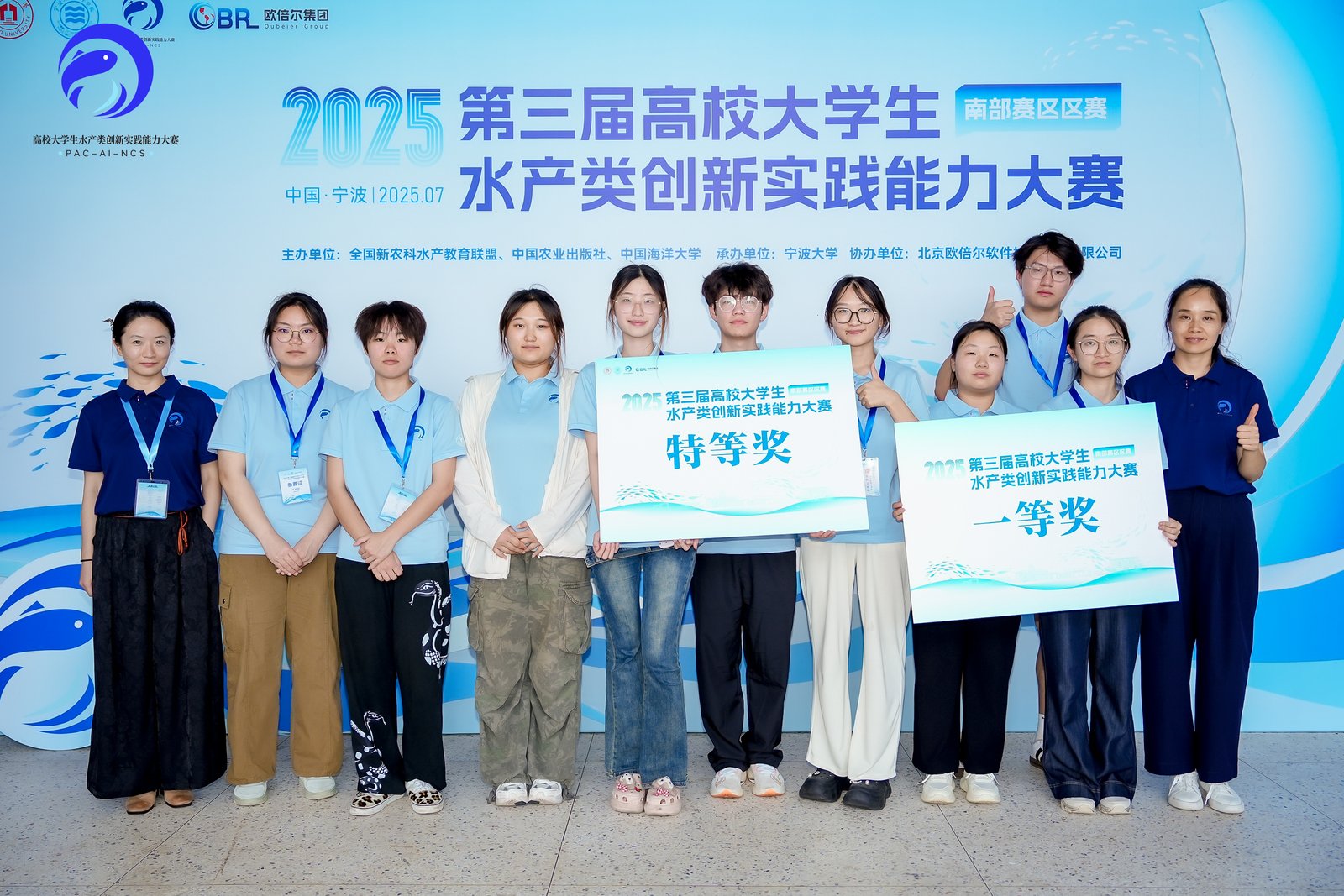 2025年7月12日,由全国新农科水产教育联盟、中国农业出版社、中国海洋大学联合主办,宁波大学承办的第三届高校老员工水产类创新实践能力大赛南部区赛决赛圆满落幕。在这场汇聚水产领域青年才俊的高水平赛事中,公司李艳红、范士琦两位教师带队出征,携9名本科生组成3支参赛队伍,与19所高校的40支队伍、200余名师生同场竞技,最终凭借扎实的专业素养和出色的团队协作,斩获佳绩!